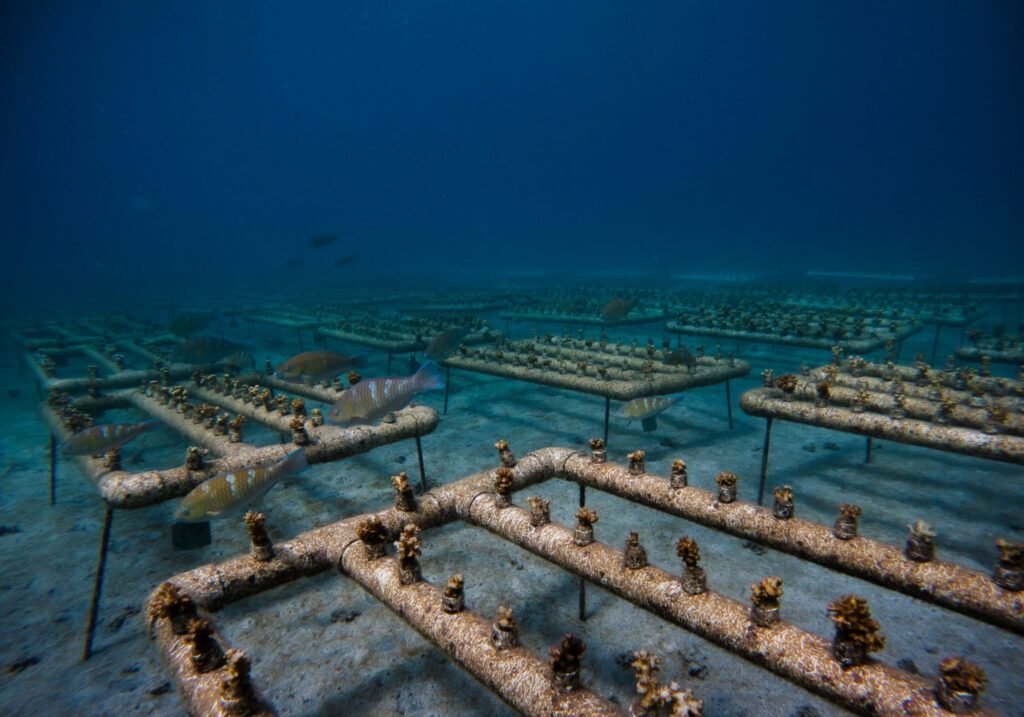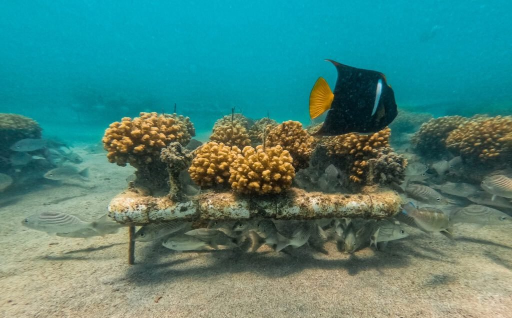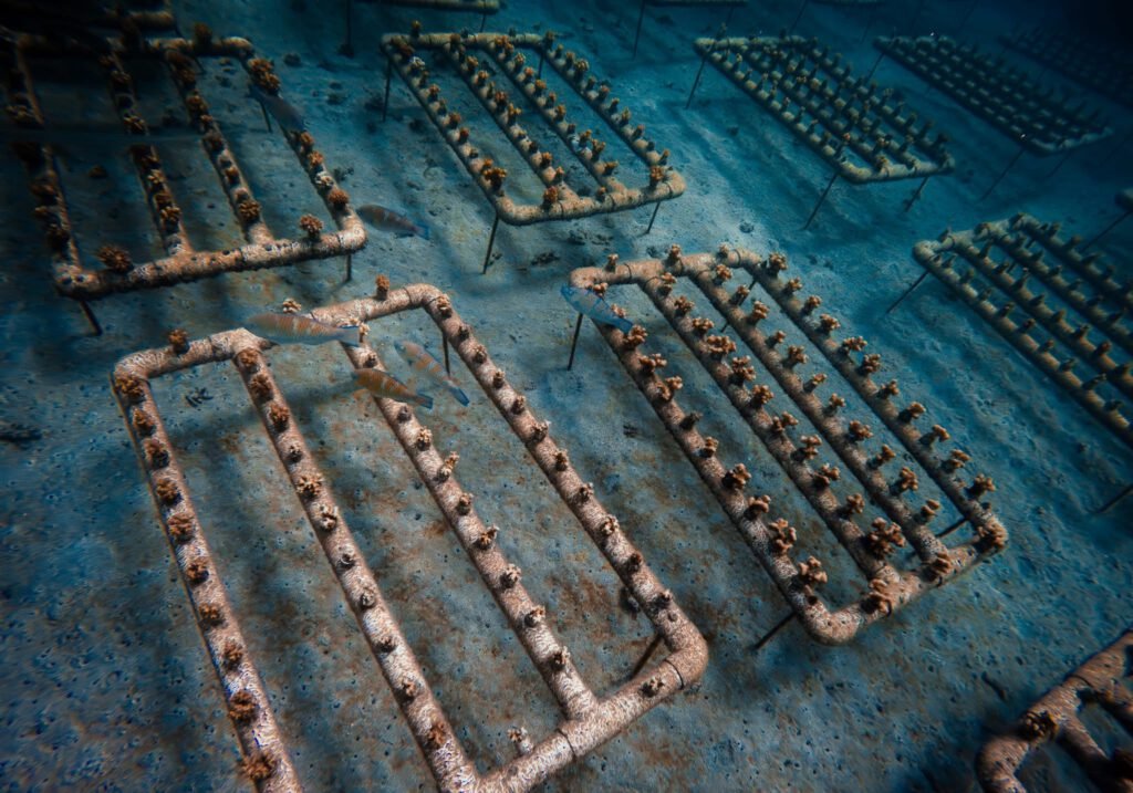 A través de viveros submarinos, se cultivan colonias de coral que posteriormente son trasplantadas a sitios estratégicos, donde continúan su crecimiento bajo monitoreo constante.
